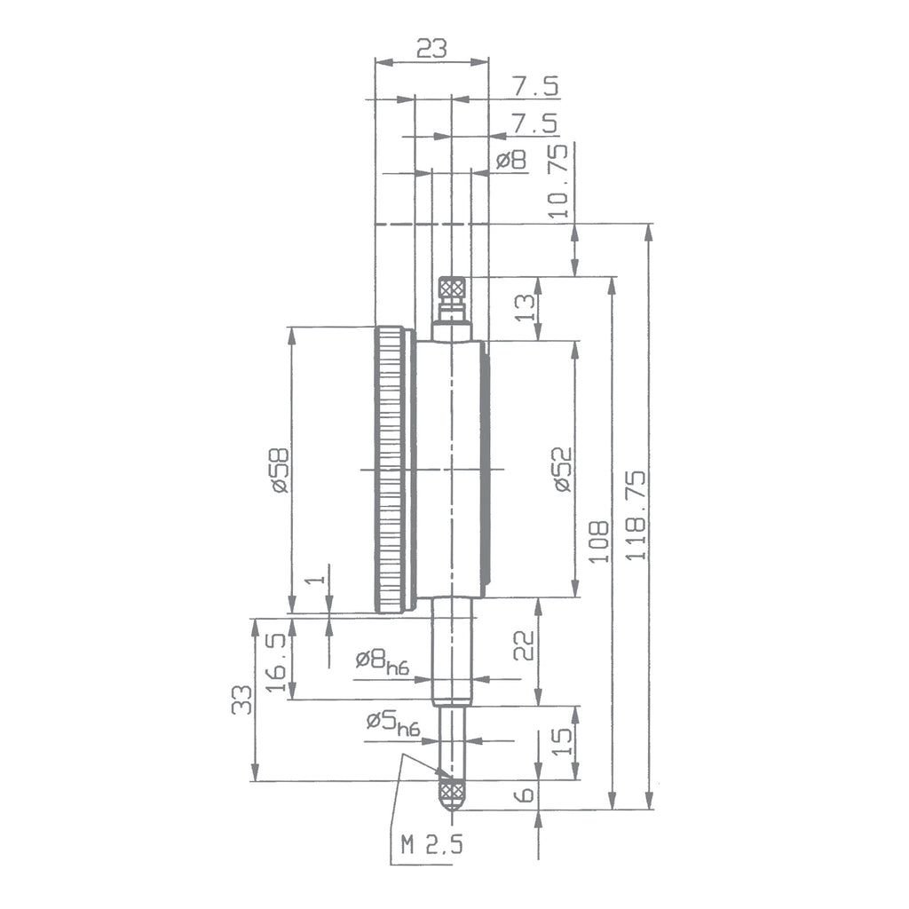 Mechanische Präzisions-Messuhr von Käfer. Robust und werkstatttauglich, mit verstärkertem Ø 5 mm Messbolzen.