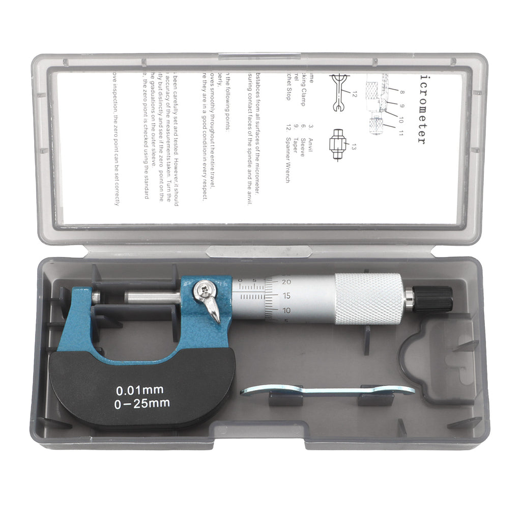 Analog micrometer in standard design with a 0.01 mm scale. Robust construction for daily use in workshops, production, and quality control. Manufactured to DIN 863 accuracy standards.
