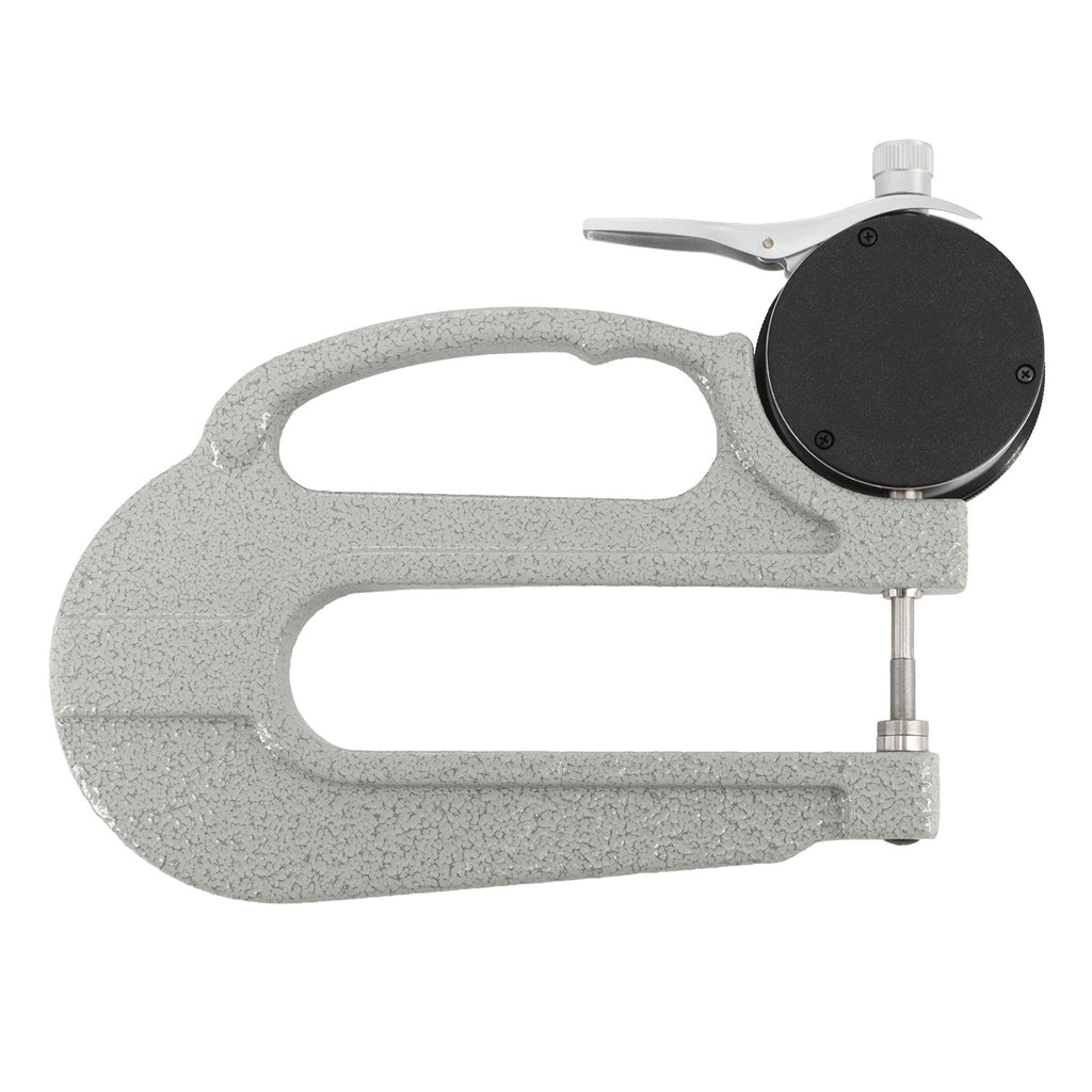 Dickenmessgerät mit Uhren-Ablesung mit extra tiefem Bügel. Für die schnelle Messung von Papier, Film, Draht, Metallfolien, Schmuck, Leder und ähnlichem Material.