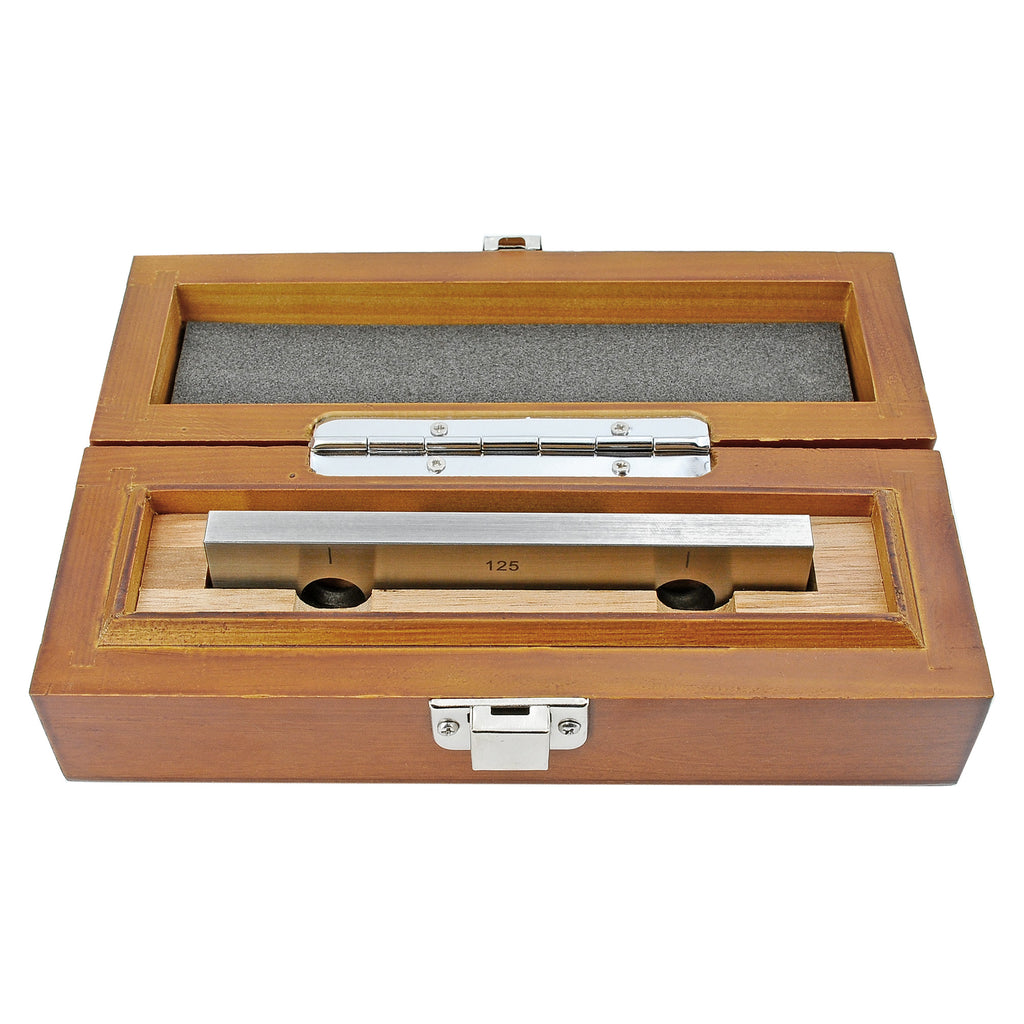 Einzelnes Parallelendmaß aus gehärtetem Stahl. Zum Prüfen und Kalibrieren von Messgeräten und Prüfmitteln. Lieferung im Holzetui.