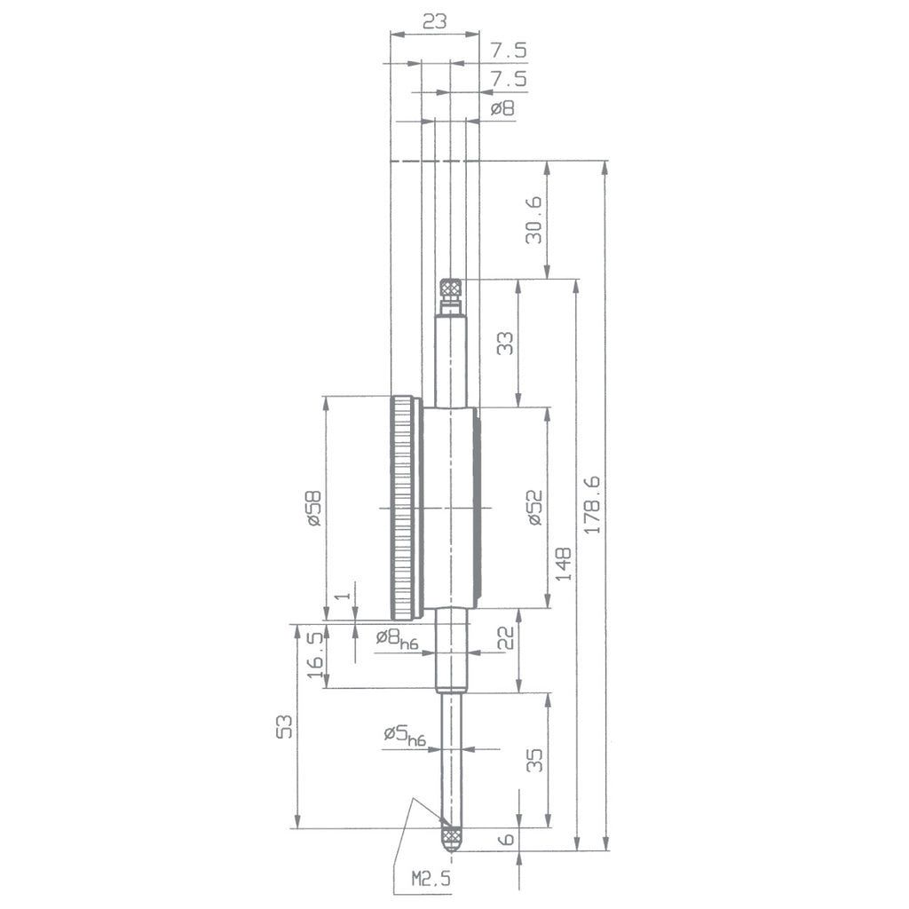 Die konzentrisch angeordnete Millimeteranzeige ermöglicht eine sichere und einfache Ablesung. Die durchdachte Konstruktion, die Verwendung ausgesuchter Teile und Materialien sowie das feinwerktechnisch ausgereifte Messwerk bürgen für ausgezeichnete messtechnische Werte und eine lange Lebensdauer der Präzisionsmessuhr M 2/30 T.
